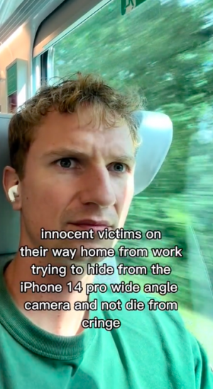 Très reprise, cette tendance est aussi largement commentée et filmée en retour. Comme ci-dessous où l’homme capture une Tube Girl mais choisit de filmer sa propre réaction. En se moquant de la tendance, il finit par surfer dessus…
