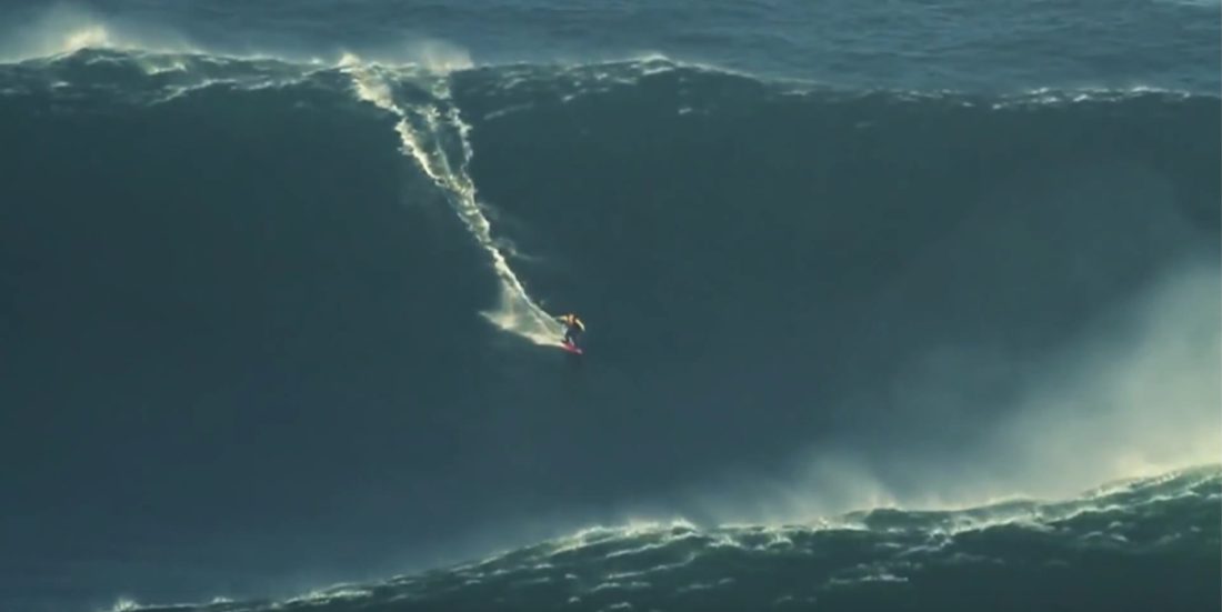 La spécialité de Garrett McNamara, ce sont bien évidemment les « big waves ». Des vagues gigantesques, qu’il a domptées de par le monde comme en Alaska ou à Hawaii, et qui doivent être attaquées de face, remorqué à l’aide d’un jet-ski. C’est donc à Nazaré que le casse-cou, qui n’en est pas à son coup d’essai, fait tomber en novembre 2011 le record du monde la plus grosse vague jamais surfée, un monstre de 23.77 mètres. Et si ce record ne tient plus depuis l’été dernier (une vague de 24.38 mètres affrontée par le Brésilien Rodrigo Koxa), Garett continue à fréquenter les falaises houleuses de Nazaré avec assiduité.