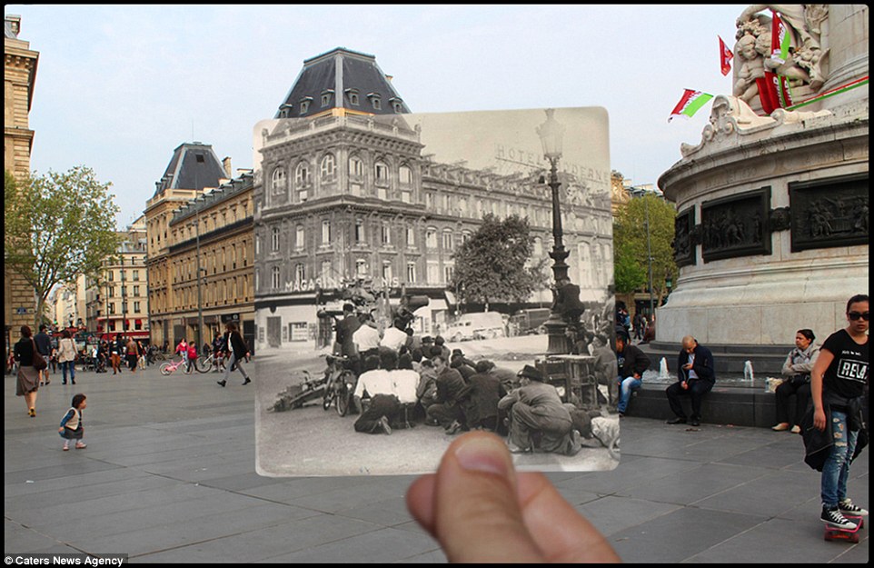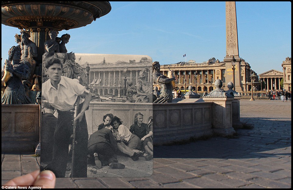 Amazing. Le photographe français Julien Knez a réalisé une série de photos sur Paris. En associant avec ingénue des clichés récents, très « carte postale » avec de vieilles photographie de la ville occupée par les nazis, l’artiste dévoile un travail impressionnant. De la Concorde à Notre-Dame, en passant par l’Arc de Triomphe, la Tour Effeil, l’Avenue Mozart, la place de la République et les Tuileries, c’est un veritable voyage dans le Paris des années 40.