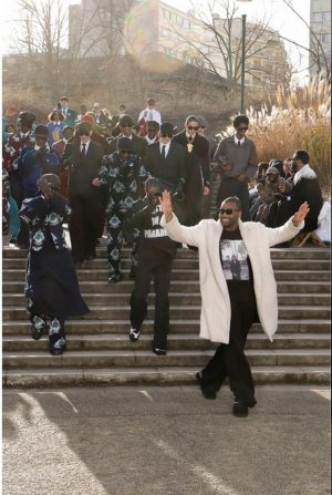 Défiler pour se souvenir. S’habiller pour ne pas oublier. Au parc Georges Brassens, dans le 15ᵉ arrondissement, l’air est froid, presque immobile. Rien ici n’est neutre. Ce n’est pas un décor, c’est un lieu de vie. Le quartier où Emeric Tchatchoua a grandi. Et cela change tout. Dès les premières secondes, on comprend que cette collection ne se regarde pas. Elle se ressent.