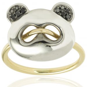 Yvonne Leon, bague Panda, en or jaune et blanc 9K et diamants noirs, 695€