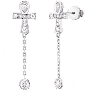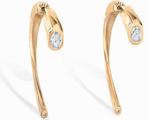 DFLY, boucles d’oreilles Cobra, s’enroule comme un serpent sur différentes parties de l’oreille, or jaune et diamants de synthèse, 4300€