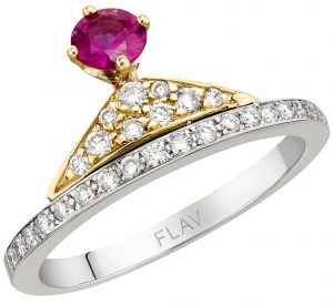 FlavParis, Bague « Jaipur », en or jaune et blanc 18 carats recyclé, diamants blancs et rubis, 2950€