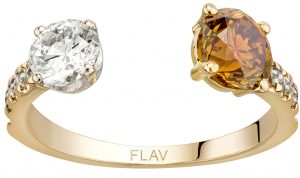 FlavParis, Bague « Pondichery », en or jaune 18 carats recyclé, diamants orange naturel (1K) et diamant blanc naturel (0,80K), 13800€