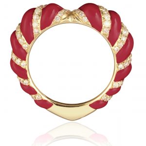 Yvonne Leon, Alliance cœur émail bordeaux, or jaune 9K et diamants, 1250€