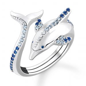 Thomas Sabo, bague Dauphin avec pierres bleues, 159€