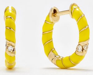 Yvonne Leon, paire de créoles en or jaune 9K, émail néon jaune et diamants, 550€