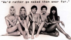 Anti-fur activists plan to plaster nude posters of the world’s top models inside thousands of Norway’s buses – but not in the Olympic region. This poster, put out by the Washington-based animal rights group People for the Ethical Treatment of Animals (PETA) , shows five nude models (L-R) Emma Sjoberg, Tafjana Patitz, Heather Stewart-Whyte, Fabiene Terwinghe and Naomi Campbell posing under the caption « We’d rather go naked than wear fur ».