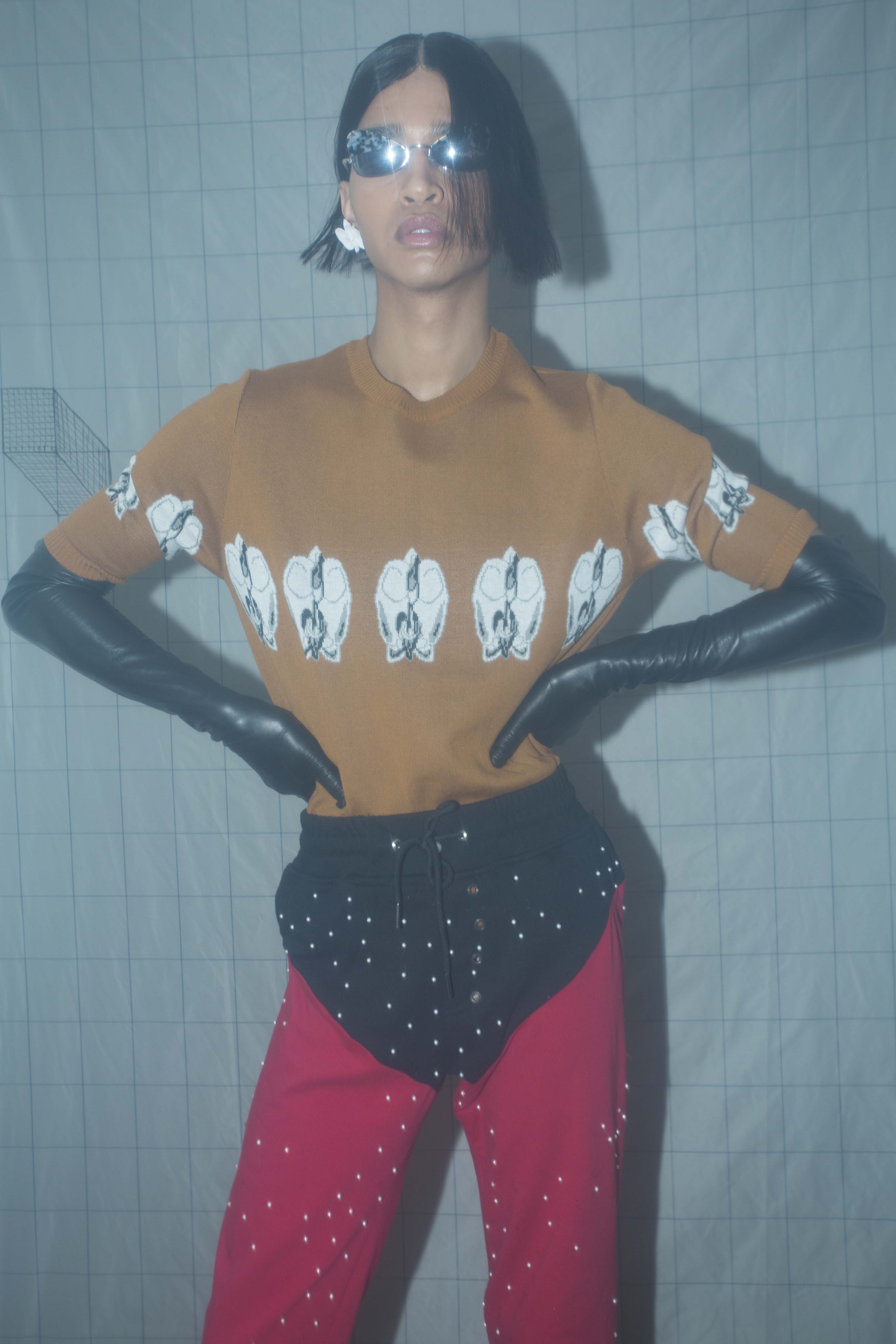 A.K : Toute cette fascination pour la technologie m’est venue lors de la création d’une boucle d’oreille 3D, en collaboration avec minale-maeda.com. Cette expérience unique, le fait de pouvoir concevoir un si bel objet à travers un programme, c’était hallucinant. Même concevoir des vêtements en tricot grâce à l’utilisation de programmes tels que la CAD [conception assistée par ordinateur], peu accessible pour la plupart des consommateurs, était pour moi une grande réussite technique. Je n’aurais pas pu le faire sans l’aide de professionnels.