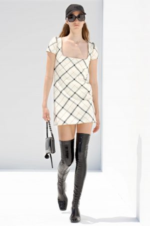 Mais les coupes près du corps et les matières choisies, apportent une touche de sportive et séduisante. En témoignent les pantalons en maille côtelée, les découpes en cercle qui dévoilent le ventre, ou encore le pantalon en cuir avec des coutures latérales ajourées.