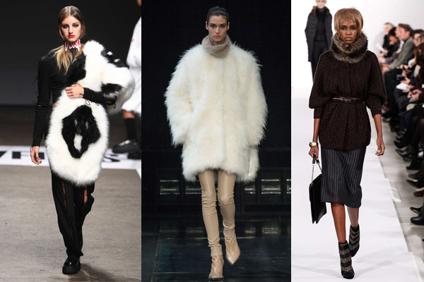 Omniprésente sur les catwalks, la fourrure confirme son éternelle suprématie sous de multiples ré-interprétations. Immaculée chez Helmut Lang, dans une version somptueuse de l’indispensable manteau d’hiver, le pelage de luxe se transforme en subtil tour de cou pour Oscar de la Renta. Sans oublier la parure juste jetée sur l’épaule imaginée par Vfiles, qu’on croirait toute droit sortie du dressing en noir et blanc de Cruella d’Enfer.