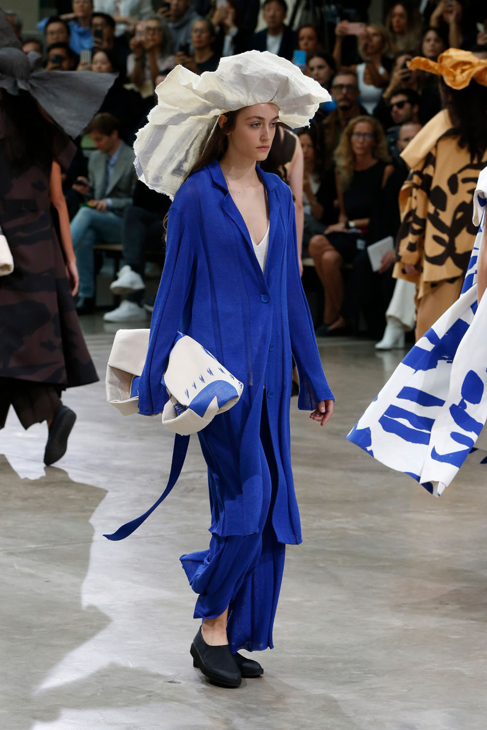 Particulièrement bien accueilli par la presse, le défilé Printemps/été 2020 Issey Miyake a sublimé une atmosphère joyeuse et dansante par de majestueux chapeaux. Fins et irréguliers, les couvres-chefs avaient cette allure décontractée et poétique signature de la marque. Mais alors c’est quoi cette tendance du « chapeau arty » ? Une jeune marque coréenne Q millinery prend le pas de cette mode. Son ethos est qu’un chapeau n’est pas seulement un article de mode, c’est une sculpture portable. Du choix du matériau à la finition, chaque processus est manipulé avec le plus grand soin, de plus toutes les pièces sont créées à la main. Grâce à ce processus délicat, chaque chapeau possède son propre caractère. C’est ce qui fait de ce phénomène du « chapeau arty » un véritable concept mode. Enfin, la marque Afterhomework Paris a dévoilé, lors de son dernier défilé, des chapeaux aux formes doucement avachies, rappelant la capeline. Légèrement déstructuré, il donne du panache à la tenue.