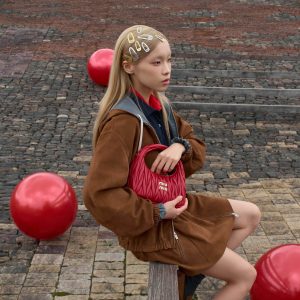 Chez Miu Miu, le sac d’étudiante déborde volontairement d’objets, comme si le contenu faisait partie du styling.