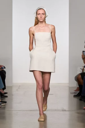 Un vent de romantisme punk, venu tout droit de la cour de Versailles du 18e siècle, a soufflé sur les catwalks cette saison. Les créateurs britanniques en ont été les principaux instigateurs, sans doute influencés par l’ouverture très remarquée de l’exposition Marie-Antoinette: Style au Victoria & Albert Museum de Londres. Chez Simone Rocha, l’été 2026 se vit comme un bal de débutante désenchantée : les brassières-corsets à paillettes se mêlent à des jupes en tulle rose façon panier, dans un contraste assumé entre douceur et rébellion. De son côté, Erdem Moralıoğlu, à la tête de Erdem, puise directement dans l’univers visuel de la fin de l’Ancien Régime, pour livrer une collection baroque-futuriste où le raffinement historique rencontre des volumes et références contemporaines. Mais la queen incontestée de cette tendance punk romantique, c’est Dilara Fındıkoğlu, avec sa collection choc intitulée Cage of Innocence. Corsets déchirés, harnais métalliques, bijoux provocants : tout dans sa mise en scène revendique une féminité puissante, libérée, rebelle, loin des carcans traditionnels. Ce retour en force des corsets sur les podiums ne glorifie pas les contraintes du passé, mais les détourne. Il affirme une esthétique féminine assumée, indocile, qui rejette les normes rigides imposées au corps.