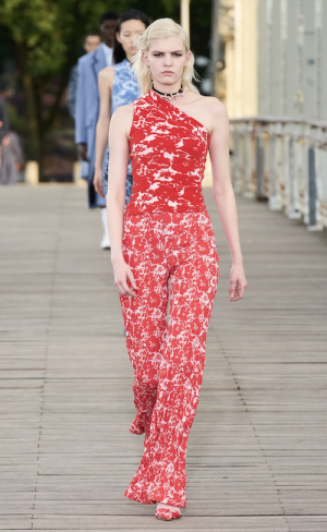 Quoi de mieux que de finir cette quatrième journée à Passerelle Debillys pour le défilé de Kenzo avec vue sur la Tour Eiffel. Beaucoup de couleurs et d’imprimés sont présents dans cette collection. Le Denim est retravaillé. Nigo s’est inspiré de la pop japonaise des années 70-80 pour créer des looks plus traditionnels mélangés avec des inspirations streetwear pour la touche contemporaine.