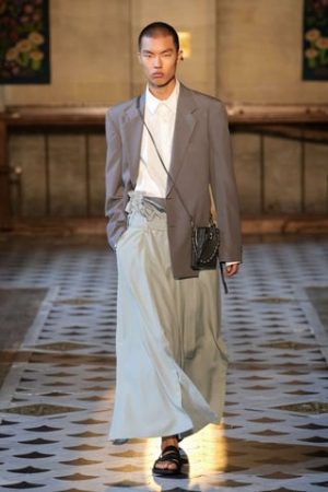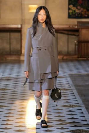A l’occasion de la Fashion Week de Paris la marque nippone UJOH a présenté sa nouvelle collection printemps/été 2024 à l’American Cathedral. La collection – fidèle au style de la marque – emprunte l’esthétique japonaise qui s’amuse à superposer les vêtements. Le jeu d’association des tenues se manifeste à travers de longue chemises sur des pantalons amples ; des  jupes sur pantalons ou encore longue chemises façon kimono assortis d’une jupe asymétrique et d’un pantalon ample, etc… La marque adopte un style minimaliste où la superposition de vêtements est au cœur de la collection autant du côté homme que du côté femme. Un jeu que l’on retrouve également sur une variation de vestes déstructurés et/ou crop. Ces types de vestes porté au dessus de chemises, peuvent dans certaines tenues produire un fort contraste entre blanc et noir. UJOH met à l’honneur l’organza de couleur blanche et noire que ce soit porté sous forme de chemise, veste ou jupe. La marque innove le design de certaines pièces avec des jupes déstructurés et asymétriques. Le choix des couleurs reste dans la sobriété: blanc, noir, gris, beige et violet. (S.I)