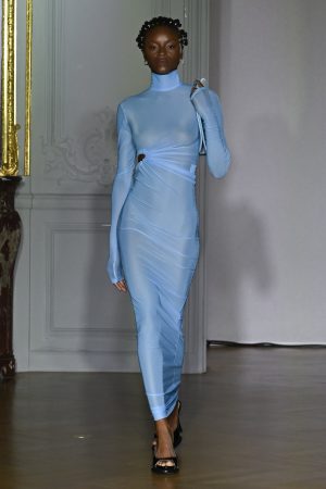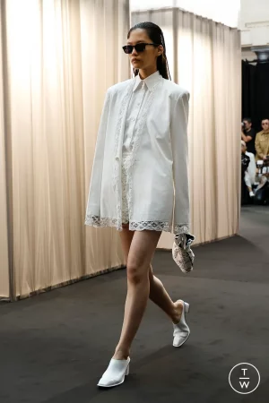 Place Vendôme, la designer de EENK, Lee Hyemee présente sa collection printemps/été 2024, Y for Yesterday. Dans une ambiance électro/tribale, le défilé nous plonge dans les inspirations passées et futures de Lee Hyemee. Les détails en dentelle se mêlent aux tailleurs élégants et les ensembles en cyanotypes se marient à des coupes fortes et innovantes. À travers Y for Yesterday, la créatrice inverse le temps, le passé devient le futur et hier devient aujourd’hui. Cette nouvelle approche créée une collection féminine, puissante et élégante. (Laura Londas)