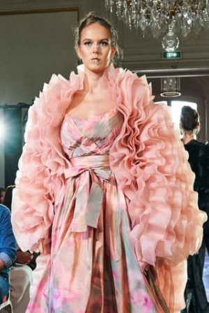 Dimanche 1er octobre Modzik était invité au défilé Arunaz Atelier. Une marque née en 2014 originaire du Kazakhstan. La marque consacre sa collection sur des « tenues habillées » : pour des festivités, ou des grandes occasions. Au programme des robes longues, courtes, ou les deux à la fois. Des ensembles vestes et pantalons, dont certaines vestes sont cintrées et laissent deviner la taille, ou au contraire oversize pour un effet loose, donnant ainsi un style Dad. Arunaz met à l’honneur d’une part les strass, paillettes, motifs, broderies ainsi que des couleurs vives. D’une autre part semble être adepte du drapé, des volants et froufrous, des manches à la fois bouffantes longues et évasés. La touche finale de la collection met en avant deux robes : l’une ayant des drapés, l’autre bouffante sont toutes les deux ornées de voiles, qui sont incrustés à la robe. La nouvelle collection printemps/été 2024 d’Arunaz Atelier opte pour une allure sophistiquée et chic, avec ce plus d’originalité. (Sandra Inack)