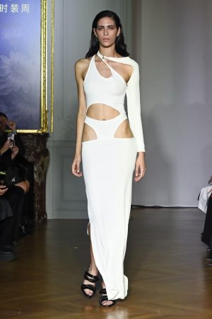 Le centre culturel de Chine accueillait, mardi dernier, le défilé de la marque Theunissen. Créée en 2019, Ariane Theunissen commence alors à composer ses premières collections en utilisant des chutes de tissus de la boutique d’antiquités de son père. Pour le deuxième défilé de la marque, la créatrice franco-belge joue entre structure et fluidité mais aussi avec la transparence et les différentes matières. Le corps de la femme est mis en valeur avec des vêtements déstructurés, notamment des bandeaux et épaulettes inspirées des 80’s, et le tout toujours dans des tenues très sexy. Le défilé était musicalement animé par le DJ Tovan Kao, une musique énergique et puissante donnant un effet très empowering. Enfin, les créations étaient accompagnées par la marque de bijoux vintages Upcycles Anicet ainsi que de la marque de chaussures Francesca Bellavita. (Elisa Lamotte)
