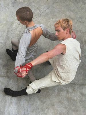 Georges Labbat avec son talent de danseur a permis d’explorer encore plus loin le voyage imaginé par Elisheva et Naomi. « Dans la vidéo avec Naomi et Elisheva, cette question de la relation de force m’a beaucoup parlé. Elle est au cœur de mon travail. Le shibari aussi, dans sa culture, met en jeu cette idée : quelqu’un attache, quelqu’un est attaché. C’est une relation de domination, et c’est un sujet essentiel pour moi. […] Il était donc logique de poursuivre dans cette voie. Ce qui m’intéresse, c’est que ce rapport de force n’est jamais figé. On peut être dominant, puis soumis, puis l’inverse. Ce va-et-vient rend la situation complexe et belle. C’est ce qui fait la beauté de cette vidéo. Il y a aussi l’histoire qui se cache derrière et votre relation à celle-ci. Ce n’est pas seulement unilatéral, avec une personne mauvaise, une personne bonne, un méchant. Les deux partagent le pouvoir et l’utilisent différemment à différents moments. C’est souvent entremêlé et beaucoup plus complexe qu’un simple système de domination directe. »