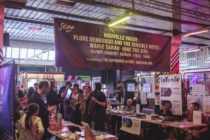 La liberté du partage se ressent lorsque l’on traverse les différentes tables, tous genres confondus. On passe d’une variété de musique à une autre, traversant les époques avec les photographies de Philippe Levy, témoin de la scène musicale rock « indé » depuis le début des années 90 : NirvanaBeastie BoysMagic… On plonge dans ses photographies monochromes, certaines argentiques et d’autres plus modernes, explorant ainsi l’ensemble de son projet Photodiscographie. La scène musicale s’ouvre avec les artistes. June The Girl qui danse et chante la pop culture aux accents horrifiques qui, cette fois, nous enjaille. Flore and The Sensibles Notes, sans artifice d’époque, interprète une chanson que l’on ne leur connaissait pas encore : un moment hors du temps, une exclusivité d’écoute. En passant d’un artiste à l’autre, on perçoit les sessions d’enregistrement, les enfants qui courent et crient autour de leurs créations, leurs coloriages, et même un petit van qui lit un vinyle sur pattes. Étonnant ? On se laisse transcender par la voix de Marie Sarah, une soul précieuse, tel un diamant. Une ambiance jazz soul qui ouvre Nouvelle Vague. Le projet reprend des titres interprétés en 2025 par Mélanie Pain, mais cette année ce sont Marine Quéméré et Shanice Sloan. Les voix s’affolent, les langues tournent et les pieds tapent au même rythme que les mains applaudissent. Le Disquaire Day, c’est ça : une énergie qui va dans tous les sens de la musique, où chaque recoin est perçu comme une pièce d’un immense puzzle qui recouvre une histoire commune à tous : la passion musicale, le culte d’un trésor d’exception, et des personnes inconnues qui se demandent si tous sont musiciens entre eux. Bien plus qu’un hommage au vinyle, cet événement est devenu une véritable occasion de partage et de découverte, mûrissant avec le temps et s’enrichissant des questions sociétales qui s’y mêlent.