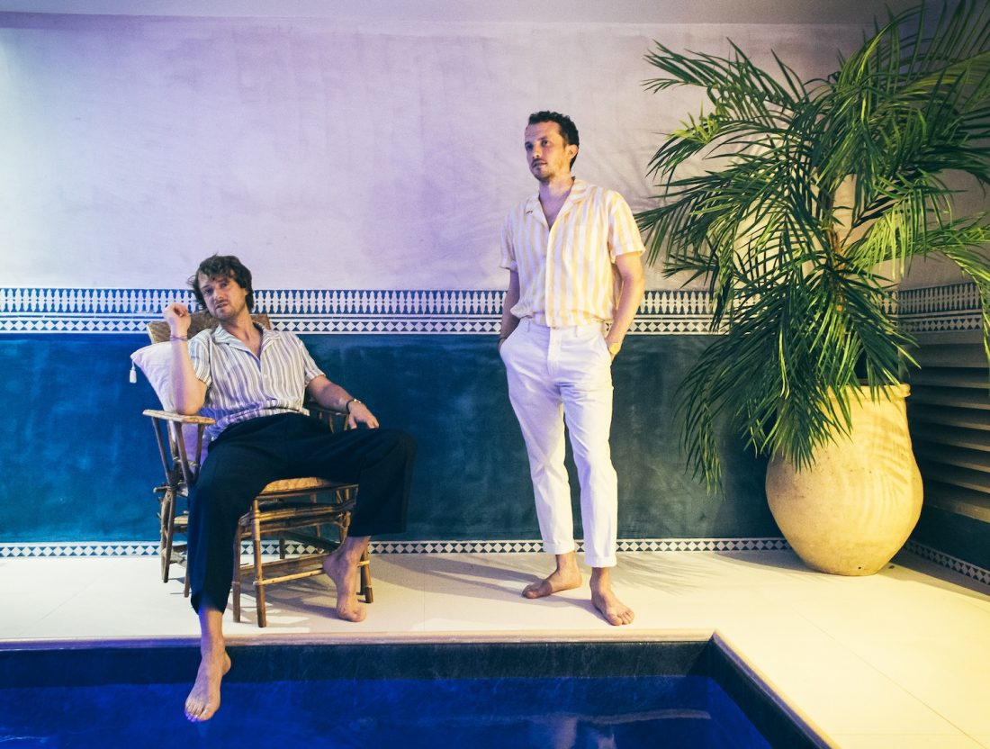 « En plein stand by musical pour cause de crise sanitaire, on avait envie de proposer un petit live intimiste, à deux, avec le minimum vital : deux petits synthés, une boite à rythme, une guitare, un micro, un shaker, et basta. L’idée était de trouver un endroit sympa, et rapidement c’est un petit hôtel aux papiers peints un peu exotiques et tropicaux qui a retenu notre attention. On a réservé trois suites différentes pour une journée, histoire de tourner 4 morceaux dans des décors distincts, 3 petits salons et une chambre.