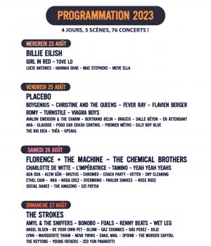 En cadeau pour ses 20 ans Rock en Seine s’offre une programmation hors norme, avec en tête d’affiche Billie Eilish, The Strokes, Placebo, Florence + The Machine ou encore The Chemical Brothers.